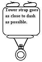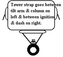 without interfering with anything else in that location. Make sure every part of this hand control system is free moving and not touching the bolster pad or in contact with anything under the steering column. Attach steering column mount straps around column as indicated in illustration (4) on your Automobility spec sheet for your vehicle. Make sure that the rubber spacer is in place and the nut that fits between the eye ring and the tower or inside the tower (check your spec sheet illustration (4).) is in its proper location. There is very little mechanical stress on this assembly, be sure that you tighten it as firm as you can and that the brake rod slides without binding through the eye ring. (The straps are made out of nylon and will not break when tightening) Lock down the camlocks and secure with the safety loops. |